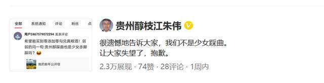 但是,为了不被网友怼、不被网友喷,并借机营销,朱伟竟然说了贵州醇不用“少女踩曲”,难道贵州醇是用“大妈踩曲”,还是“机械踩曲”。