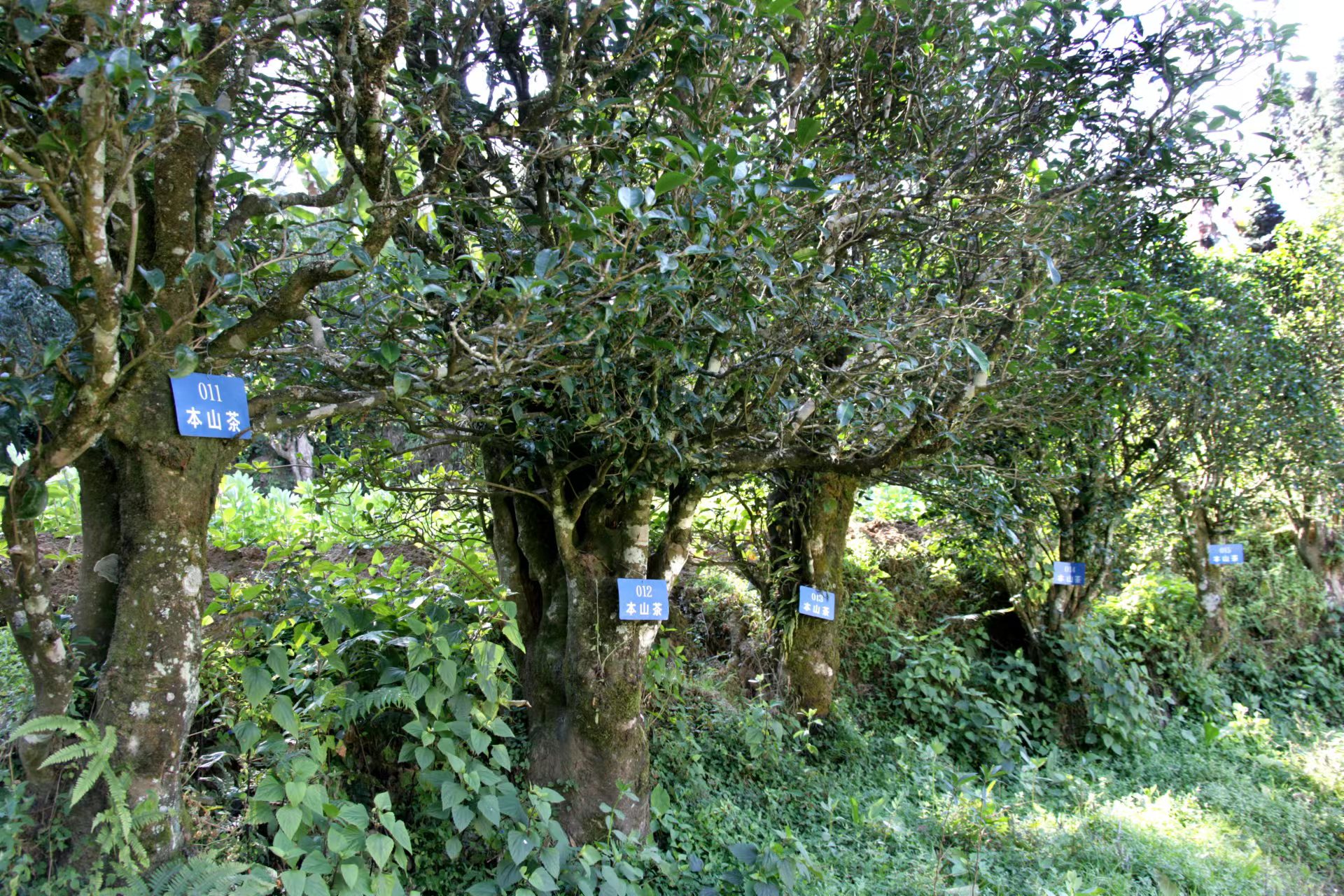 白莺山古茶园古茶树树龄在400年以上的大茶树有16万多株,其中:株高6~10m的有100多株;5m以上的有6500株;较大的茶树高9~10m,根部基围0.8~3.9m,其中最具代表性的二嘎子茶王,树龄达2800年,树高10.5m,树幅8.4×8.6m,基围3.85m,有11个分枝。