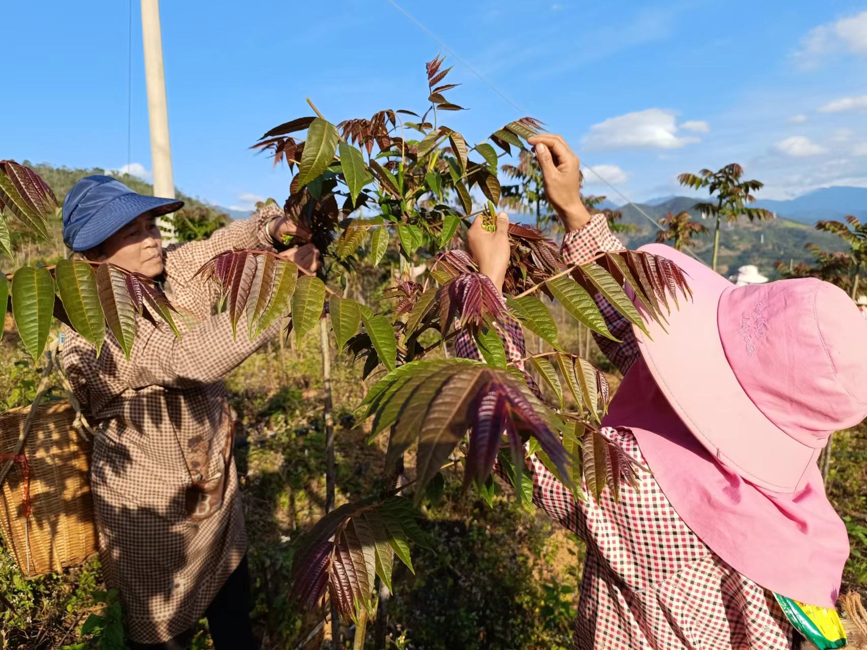 据了解,公司落户忙怀乡得到了各级党委、政府的大力支持,健全完善联农带农机制,探索出“党建+公司+农户+分红”“党建+产业发展+示范带动+分红”企地共建模式,以330亩香椿基地为突破口,辐射周边慢卡村、拉弄村壮大村集体经济。2022年基地初见成效,每亩香椿产量达60公斤,平均销售单价每公斤90元,生产收入155万元。同时,公司顺势而谋,本着做大做强的经营理念,香椿种植已向周边乡镇和周边县区延伸。