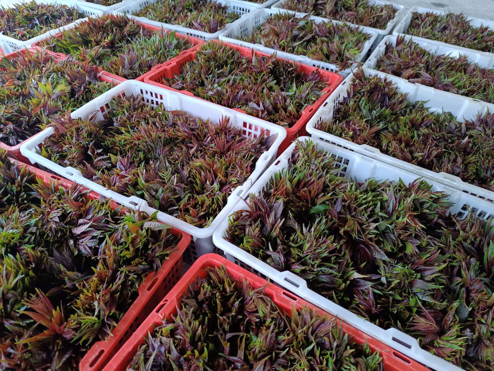 公司董事长杨红军告诉记者,该基地2021年4月份建立,种植“四季香椿”330亩,每年可以采收7茬,延续至次年3月初结束,现在是今年第二茬采收。注册了“滇茅香椿芽”商标,获得国家食品安全检测绿色认证,主要销往北京、上海、广州。由于品质好,非常受欢迎,市场价格高,最高的香椿芽能卖到每公斤220元。