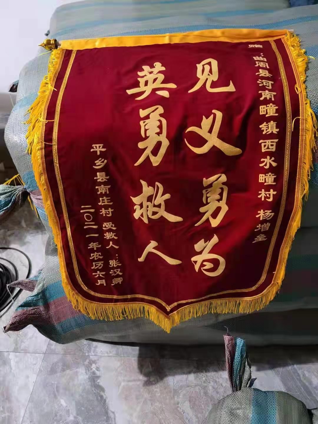 要不是增垒拦住俺‘二小’不让他下到河里,他肯定就没命了!”7月23日,平乡县南庄村张贵川把一面写有“见义勇为,英勇救人”的锦旗送到曲周县河南疃镇西水疃村杨增垒家中。张贵川说的“二小”是他的二儿子张汉卿,关键时刻,是杨增垒拦住了张汉卿,救了他一命。不但如此,杨增垒还救了张汉卿的同伴。