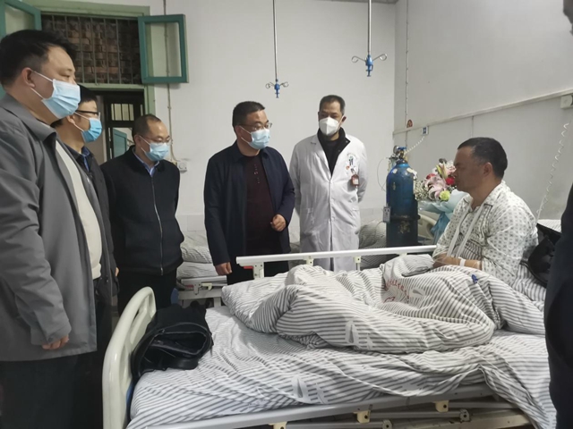 ▲县卫健局相关负责领导看望慰问袁斐二人。