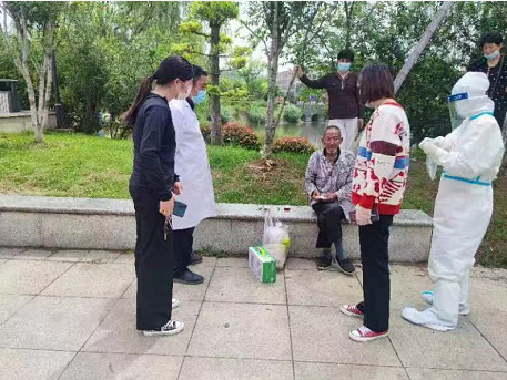 经民警进行人口信息核查确认本辖区无此人后,社区工作人员考虑到疫情防控和天气降温等因素,耐心向他讲解救助的各项好政策,希望他能到救助站接受救助。但是,老人家无论如何也不愿意去救助站。工作人员了解到因为他无法提供身份证等有效证件,没有完成核酸检测时,立即联系了北城医院负责人朱成亮派人就近为他做了核酸检测。及时精准阻断了因流浪人员四处流动可能造成的风险隐患。