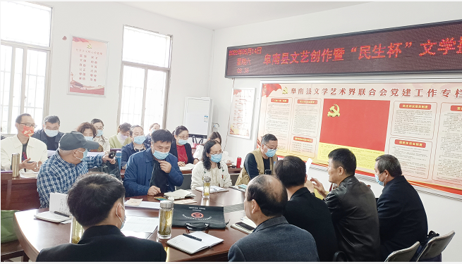 中国记录通讯社安徽阜南消息(通讯员 郭万军 记者 傅友君):为深入宣传民生工程政策,充分展示民生工程成效,2022年5月14日上午,安徽省阜南县民生办联合阜南县文联在县文联会议室举行了“民生杯”文学艺术创作研讨会,邀请县内知名摄影家、作家研讨如何拍摄民生图片、书写民生故事。会议由阜南县文联主席高田主持,阜南县民生办、阜南县作家协会、阜南县摄影家协会负责人及部分县内知名作家、摄影家参加会议。