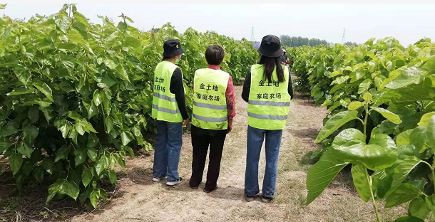 在采摘的桑园里,金土地家庭农场老板刘影向记者侃侃而谈, “我们为民、为农、为生活”的理念,把金土地家庭农场百亩桑园,打造成永久性的“果桑种育示范基地”,成为集采摘、参观、娱乐为一体的休憩驿站。让市民到此一摘,令人不禁忘却都市的喧嚣和工作的繁忙,感受到大自然的醇美与恬静。