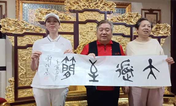 阜阳藉全国著名书书法艺术家、清华大学客座教授刘呢生为感谢驻阜媒体对家乡阜阳市外宣工作的支持,为参加活动的每位媒体人赠送一幅作品。