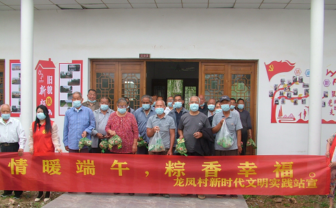 村两委班子成员、村老年协会会长、区老年协会会长将端午节的粽子分发给老人们。50多位参会老人手提两包粽子。(大约20支)笑逐颜开,直夸村两委会办事,一个劲地说共产党好,党的政策好。孩子们外出打工,我们照样可以吃上端午的粽子。
