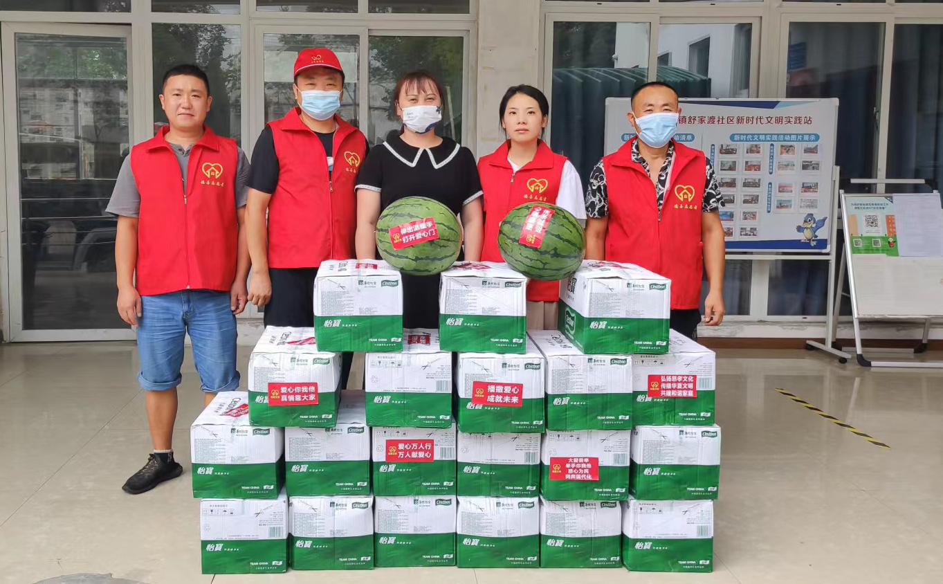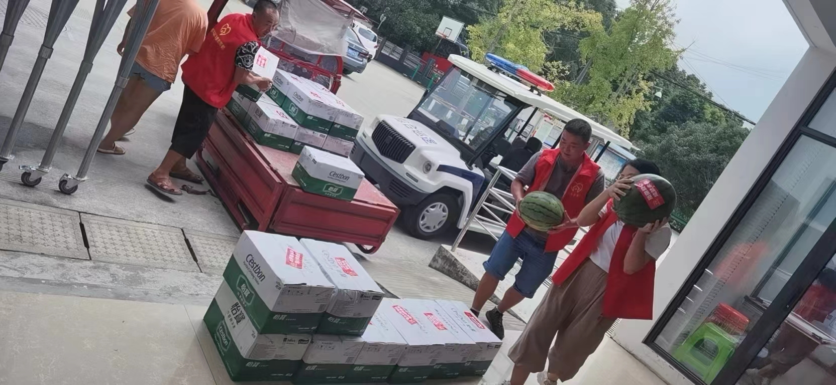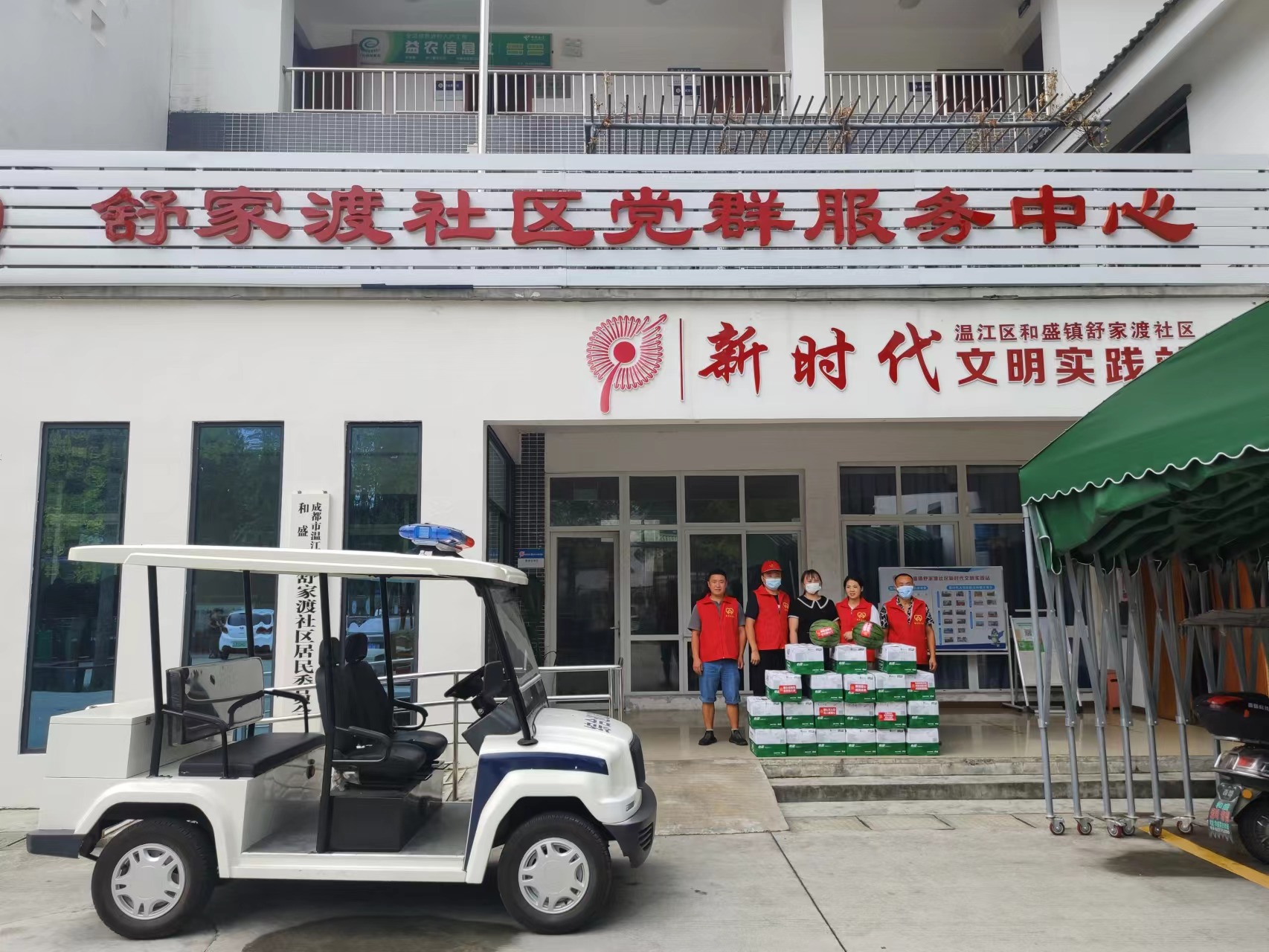 8月26日中午,温江德善志愿者服务中心理事长陈中军、志愿者张洪和刘丽等将爱心物质送给了温江和盛镇舒家渡社区, 20件矿泉水和西瓜等物质,志愿者们对社区工作人员的无私奉献精神致以崇高的敬意。本次捐赠物品由和盛镇舒家渡社区书记胡静同志接收,社区的所有工作人员对德善服务者中心这样暖心行为也表示非常感动,大家共同克服高温天气,恪尽职守完成任务。