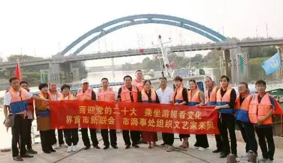 中国记录通讯社安徽界首消息(通讯员 王瑞 记者 傅友君)日前,安徽省界首市新联会组织诗人、书画家、摄影家等20多名会员,开展“喜迎党的二十大,乘坐游艇看变化”文艺采风。界首市海事(港航)管理中心负责人张慧杰亲自领航,还安排3名工作人员负责安全保护。