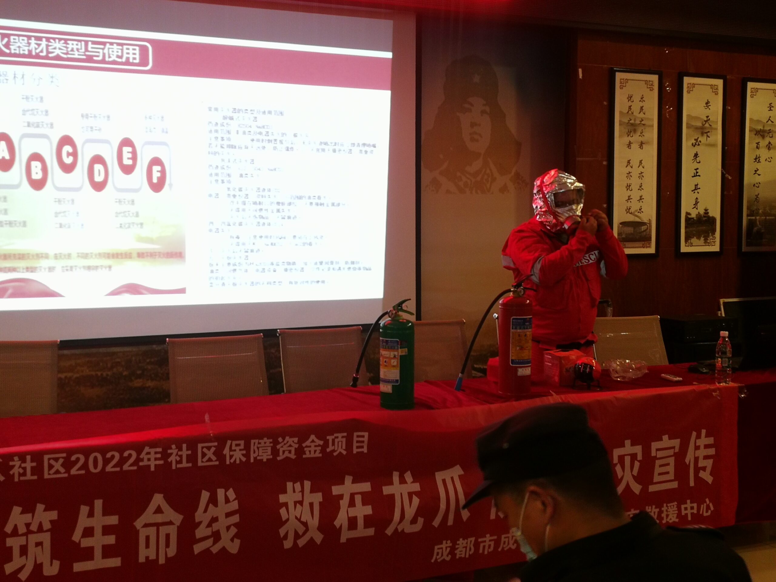 10月27日下午15时在社区会议室开展2022年龙爪社区保障资金项目“共筑生命线、救在龙爪”系列活动中的“共筑生命线、救在龙爪防灾减灾宣传”,讲座以消防防灾减灾安全知识培训为主题。此次活动特邀应急救援王老师授课培训。王老师引用发生在实际生活中的真实案例,通过触目惊心的事例,强烈震撼的火灾现场图片 ,使居民了解防火的重要性和严峻性,为大家带来一堂别开生面的消防知识防灾减灾培训,他们从以下以消防四个能力进行四个方面进行了详细讲解:一是发生火灾的起因,强调提高安全防范意识的重要性;二是日常生活中的火灾隐患,加强学习消防知识的必要性;三是讲授各类灭火器材的使用方法及其性能;四是火灾现场自救逃生的技能和扑救初期火灾的时机和方法。通过此次消防知识宣传活动,进一步强化了职工们的消防常识和消防安全防范意识,提高了火灾防范和火场逃生的自我保护能力,对我中心认真落实各项消防安全制度和措施、创建平安和谐社区具有重要的现实意义。