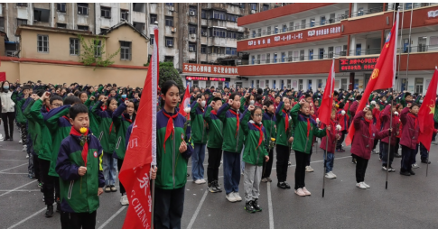 活动现场,全体少先队员,还举行了重温少先队入队誓词,瞻仰“四九”机关遗址雕塑,为先烈献上鲜花,沿着长廊寻访红色记忆等活动。