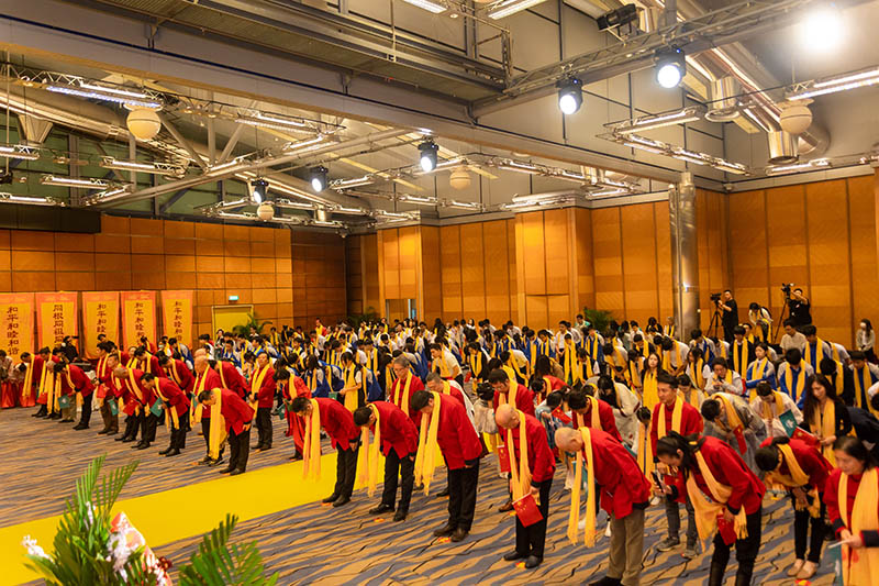 今年澳门拜祖大典庄严肃穆,形式多样。不仅丰富了拜祖大典的内涵,更提升了澳门拜祖大典的文化品位,可谓是亮点多多。来自澳门培道学校的30名小学生,满怀敬意吟唱《黄帝颂》,并以饱蘸心血的笔墨和赤诚热情,挥毫泼墨书写“炎黄子孙共条根”、“华夏儿女一家亲”等内容,充分表达了炎黄子孙的共同心声,彰显澳门青少年“寻根、固魂、筑梦”的精神追求;在“礼韵敬拜”环节,澳门大学、澳门理工大学联合组建的大学生礼韵表演队,出演《礼射神韵》节目。意寓黄帝发明了弓箭,是中国礼乐的创建者,藉此展现中华民族人文精神,传播黄帝文化的魅力;“祈福中华”环节,来自澳门工商联会、澳门地产业总商会、澳门国际青少年文化艺术交流协会、澳门嘉应同乡会、澳门梅州商会、澳门兴宁市同乡会、澳门大学、澳门科技大学、澳门理工大学等二十余家商协会和高等院校的代表,在姓氏树上庄重地悬挂祈福牌,为家族培德,为事业培福,祈福中华民族繁荣昌盛,祈福澳门明天更美好。