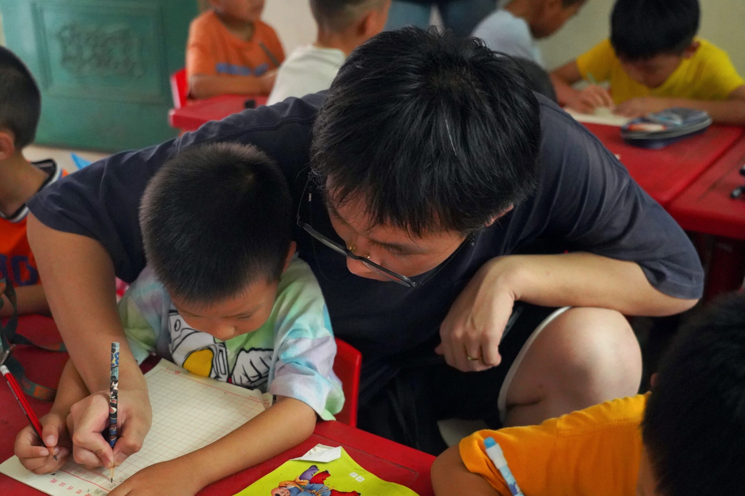 2023年7月15日,祖彬留守儿童成长乐园的幼儿园小朋友们,在南京航空航天大学支点人生“虔心拾光”江西分团的团员们的带领下,开展了生动有趣的拼音读写和汉字基础笔画课。