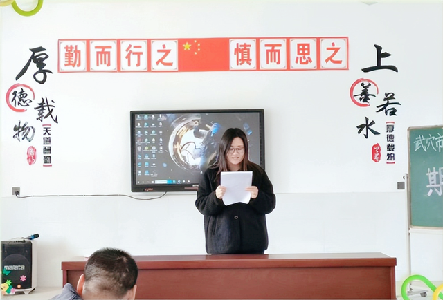 回眸向来耕耘处,亦有收获亦笃行。张雄老师以“砥砺前行正当时,齐心协力赴未来”为主题,介绍了自己本学期带三个班的英语课程的教学工作完成情况,并且在本学期负责的政教工作,每周的升旗、管理少先队、负责学校的卫生情况,每一件事无不倾洒这张老师的滴滴汗水。