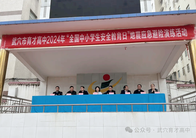 为切实提高学校防范突发重大灾害的应急处置能力,让师生掌握面临灾害时应急避险的正确方法,从而最大限度地保护全体师生的生命安全,4月15日,正值第9个国家安全教育日,武穴市育才高中开展应急疏散演练活动。武穴市委第三巡察组组长张慧平,副组长吴亚宏,市应急管理局党委书记、局长胡志华,应急管理局党委成员、政治部主任兰刚,市教育局党委成员、教师管理服务中心主任陈斌出席活动。活动由育才高中副校长陶磊担任副指挥。