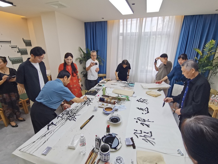揭牌仪式后,现场还举行了创作交流活动。书画家们挥毫泼墨,一展风采,他们用精湛的技艺和独特的艺术视角,创作出一幅幅精美的书画作品。在交流中,大家分享创作心得,探讨书画艺术的发展趋势,现场氛围热烈而融洽。