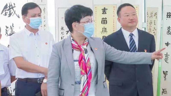 7月1日,十师北屯市党委副书记、师长、市人民政府党组书记、市长陈芳一行亲临书画展厅,在一幅幅书画作品前认真欣赏,与书画爱好者们热情互动交流,深入谈论作品的风格、内涵及表现手法,详细询问作者的有关情况并对作品给予高度评价。她说,此次活动的开展,既是对贯彻落实新时代党的治疆方略,特别是推动“文化润疆”工程深入实施的具体体现,也是展现中华优秀传统文化的源远流长、博大精深和各族人民精神面貌的大舞台,活动具有非常重要的时代价值与现实意义。通过活动的开展,要进一步弘扬时代精神,传承中华优秀传统文化,使“文化润疆”工程深入人心。
