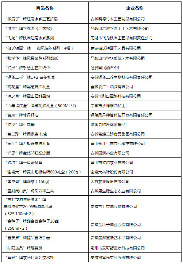 2021年安徽特色伴手礼名录