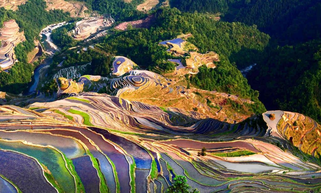 加榜梯田,位于贵州省黔东南苗族侗族自治州从江县西部月亮山腹地的加榜乡东北面,距县城80公里,是中国最好梯田之一。梯田中散落着苗乡特有的吊脚楼。是苗族人世世代代留下的杰作。苗族是“稻饭鱼羹”的民族。