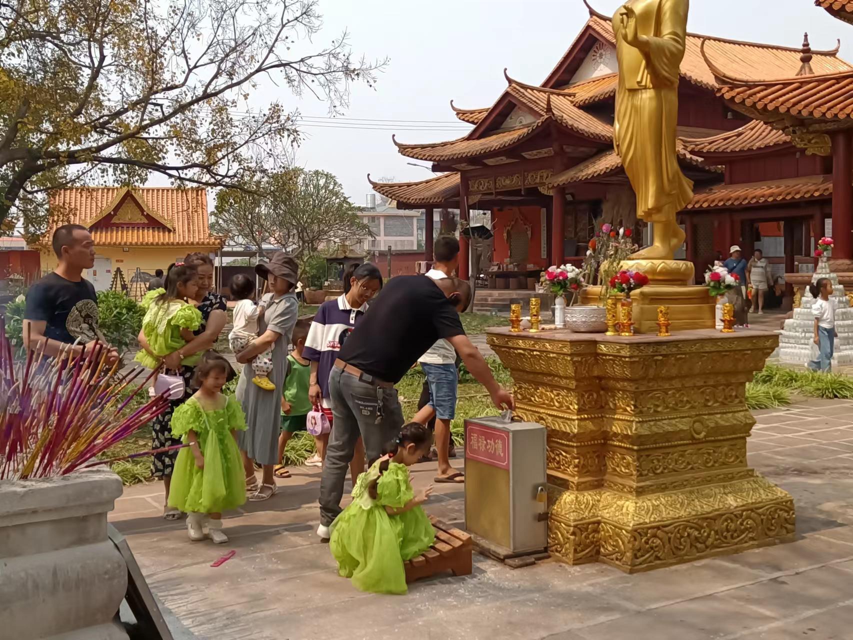 历史上,傣族群众的文化传承,以寺庙为中心。每年傣历年后,成千上万来自傣族地区和东南亚的信教群众前来朝拜、念经滴水、赕钱施物,祈求佛祖保佑吉祥安康,来年风调雨顺、五谷丰登。每年此时,都是场面宏大,规模空前。