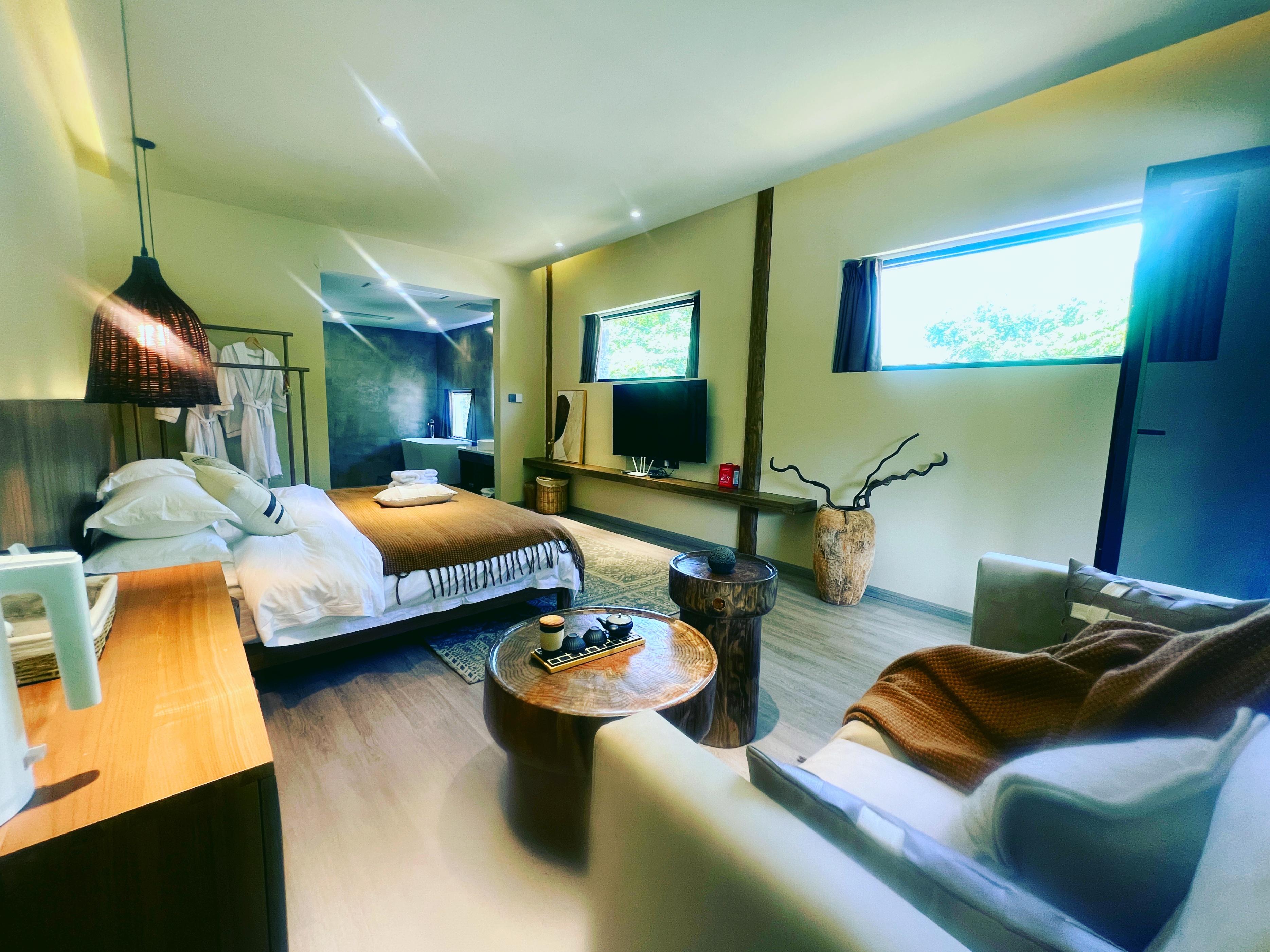 开在村里的“慢来悦”民宿,也开始热闹起来。依山而建的民宿视野开阔,门前还修建了喷水池,环境幽雅。这家民宿原本是群众和艳群的老宅,修葺后宾客盈门。“我们主打的是现代民俗概念,以吸引更多年轻群体。最近开设的体验区,增强了亲子家庭的黏性……”