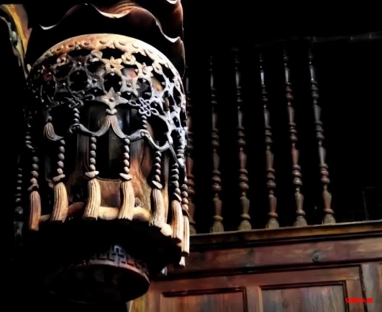 在陈氏宗祠和陈氏民居的正屋廊柱下,有两个镂空的木灯笼。灯笼分为三层镂空雕刻。当年的工匠镂刻时,要先雕刻出灯笼的外形,再用细小的刻刀,一层层往里镂空。