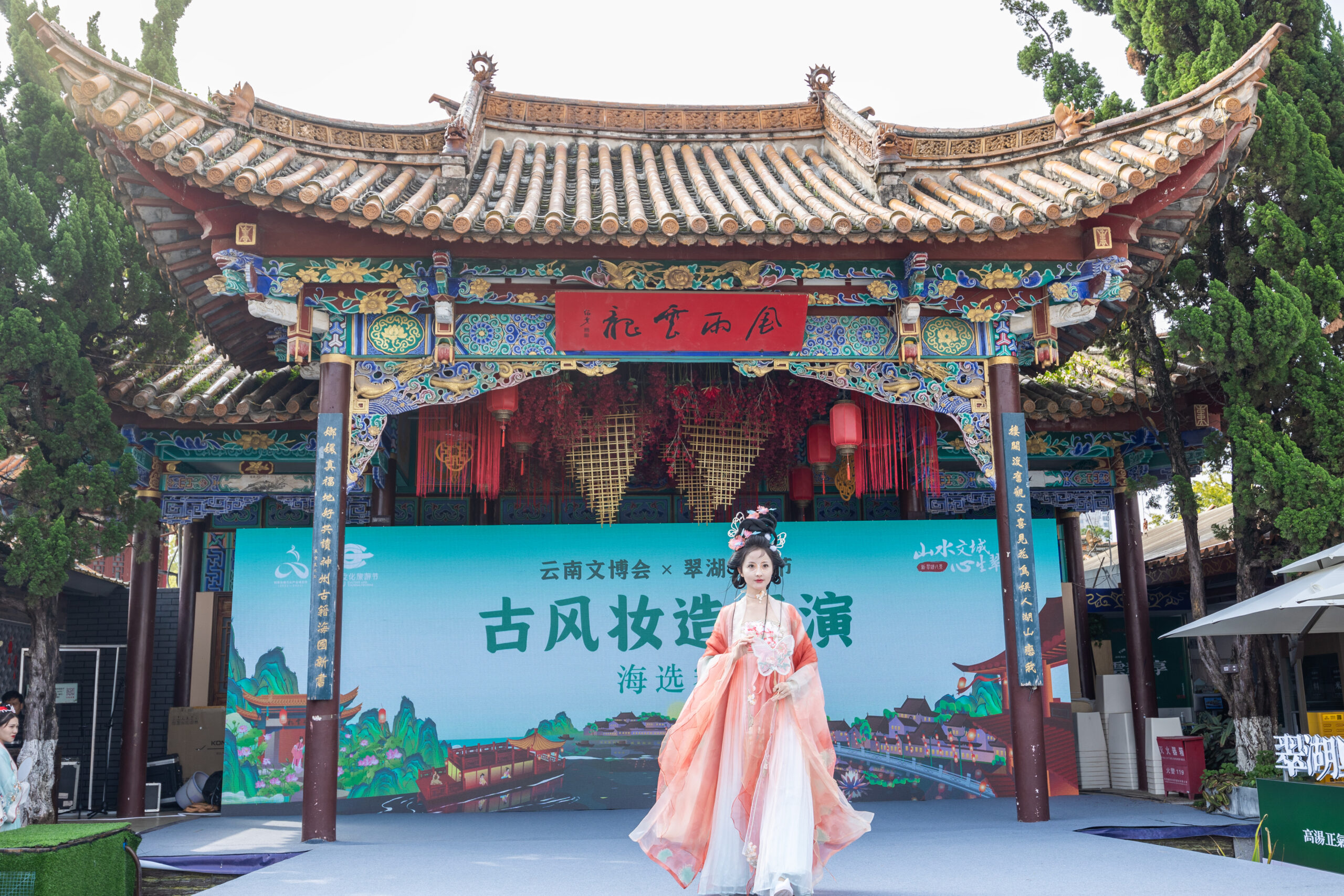 10月21日,在2023云南省文博会翠湖分会场,翠湖文化旅游节之古风妆造竞演,开启了“众人集结·二十强”争夺战,百名选手上台角逐。