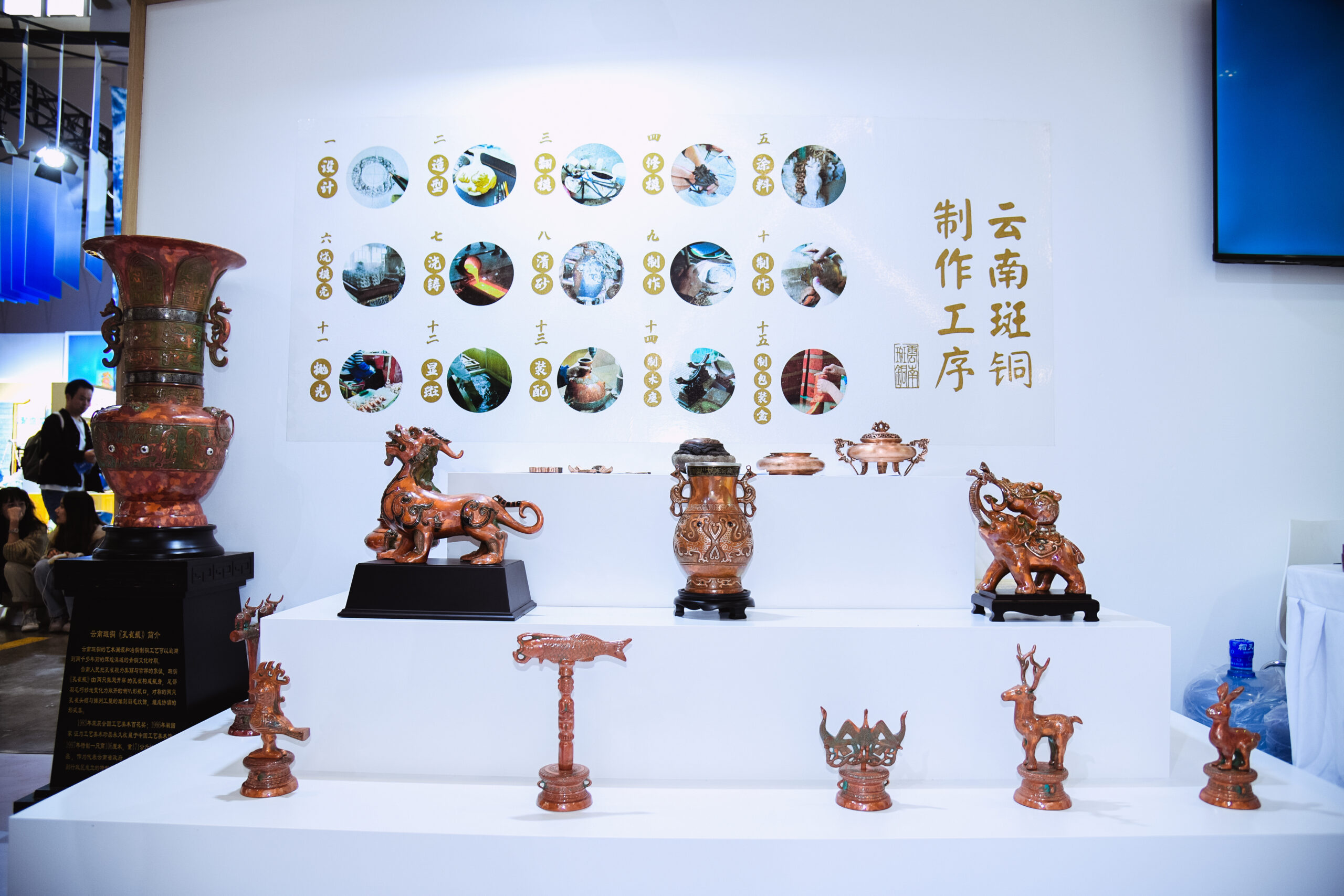 另一项极具云南特色的非遗便是昆明斑铜厂展出的斑铜制作技艺,色泽瑰丽、造型浑厚的斑铜手工艺品,在几代斑铜匠师的传承与创新中,把锤、锉、錾、镂、熔、镶、掐、焊等滇派特种技艺和先进工艺相结合,达到艺术的完美统一,成为中国工艺美术的著名品牌。现场,斑铜工匠师还进行了技艺展示,向观展市民展示了斑铜工艺品的锻造工序。