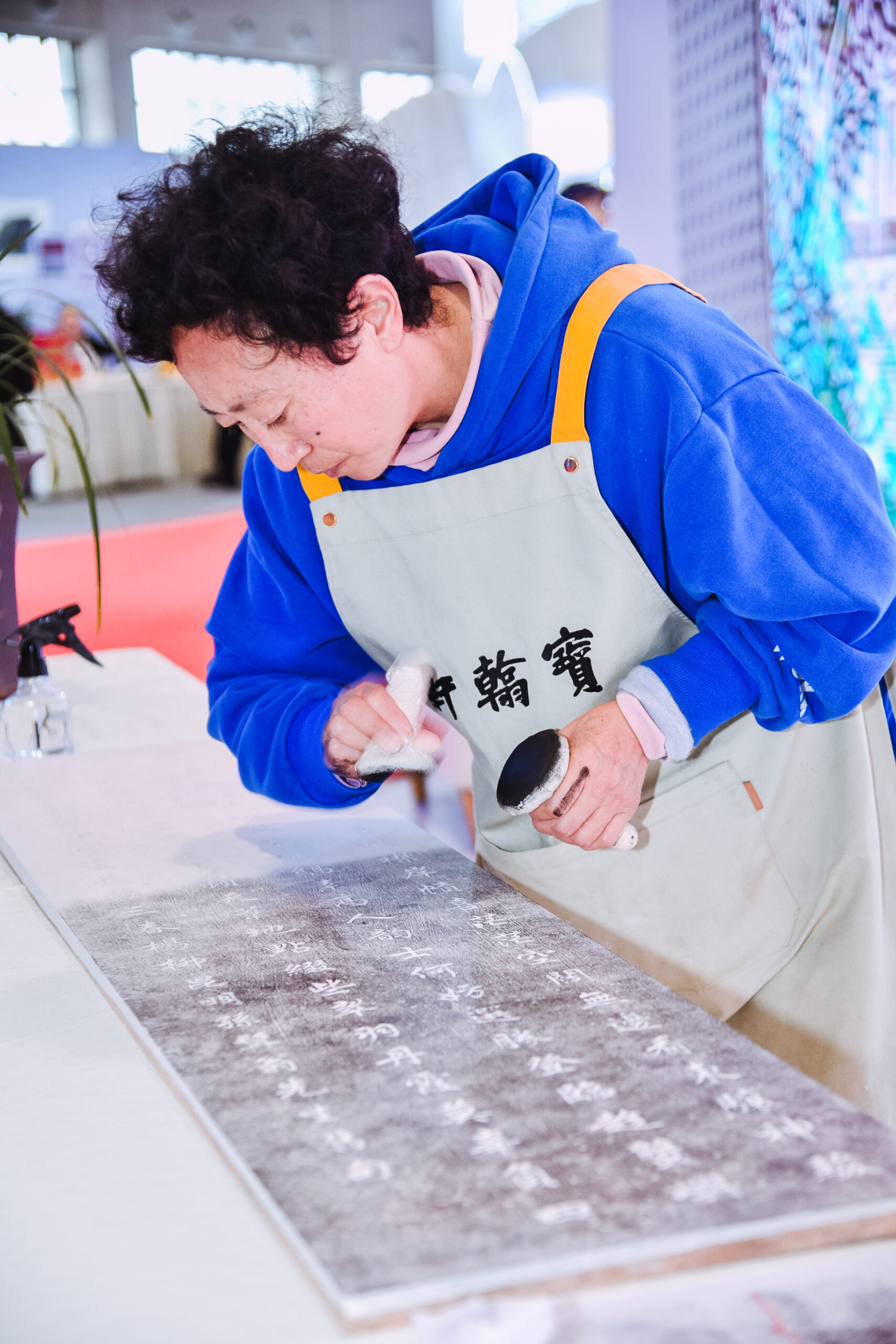 非遗传承人张惠玲老师以互动体验的方式,向观众展现了“传古拓今”的传拓技艺。传拓是用于拓存名家真迹、字画古迹的一门手艺,这一技艺的传承得以让无数的珍贵文献、文物保存下来,让历史文化有迹可循,在文物保护和文化传承中发挥着重要作用。宝翰轩已将这门技艺传承多年,除了传拓外,还有滇派装裱、古籍修复技艺,徐悲鸿、齐白石等名家曾辗转千里,将字画送到宝翰轩进行装裱。