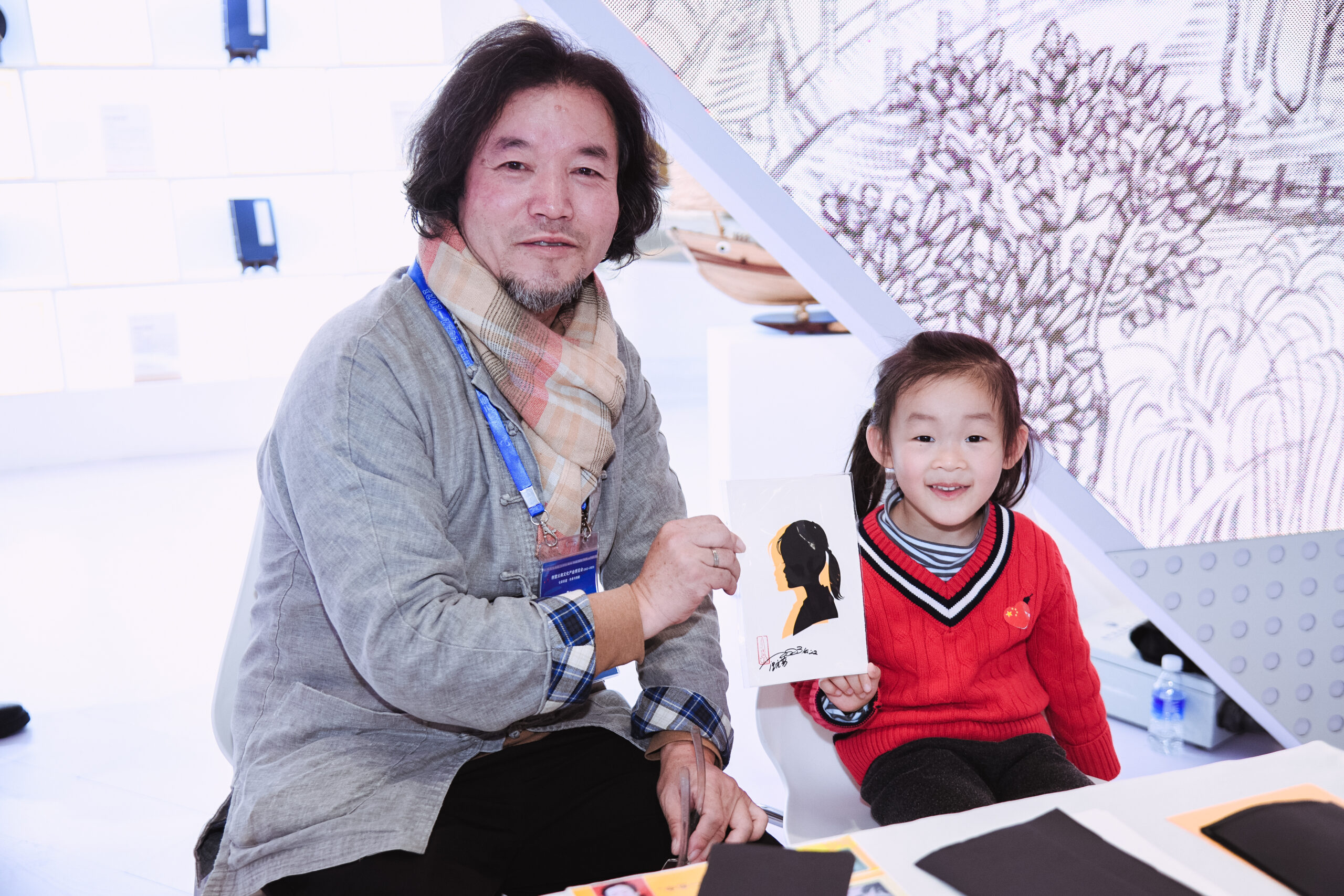 被誉为“中华神剪”的汪元老师,“以快致胜、以精为美”,40秒的时间,一幅栩栩如生的人物肖像剪影便在其神乎其神的手法下展现了出来。“今天是在朋友的‘安利’下慕名而来的,太神奇了”,一位前来体验的观众对手中的肖像剪影赞不绝口。