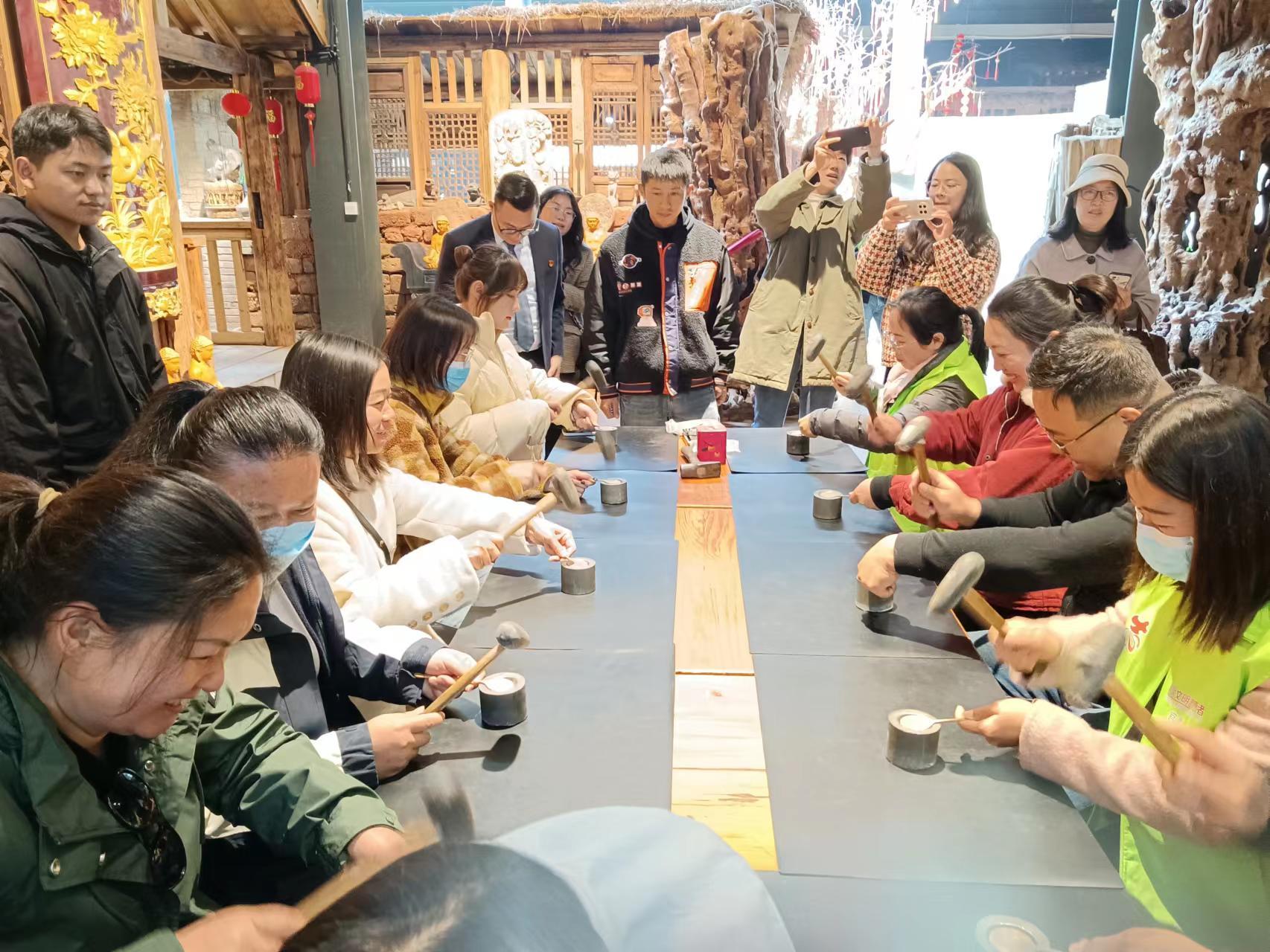 今天,云南金大师培训学校,也将非遗体验馆搬到了季官社区村史馆。很多提前报名的社区居民在听完传承人的讲解后,自己用牛角锤敲打着,自己动手做一把小汤勺。