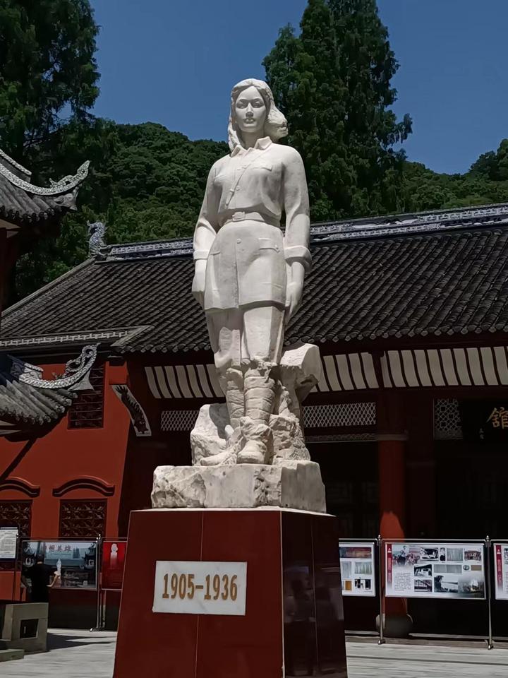 翠屏书院内,有很多郁郁葱葱的四川省古树名木——黄葛树。古木的环抱中,赵一曼雕塑矗立在这里已有62年。雕塑俯瞰下,就是日新月异的宜宾市。