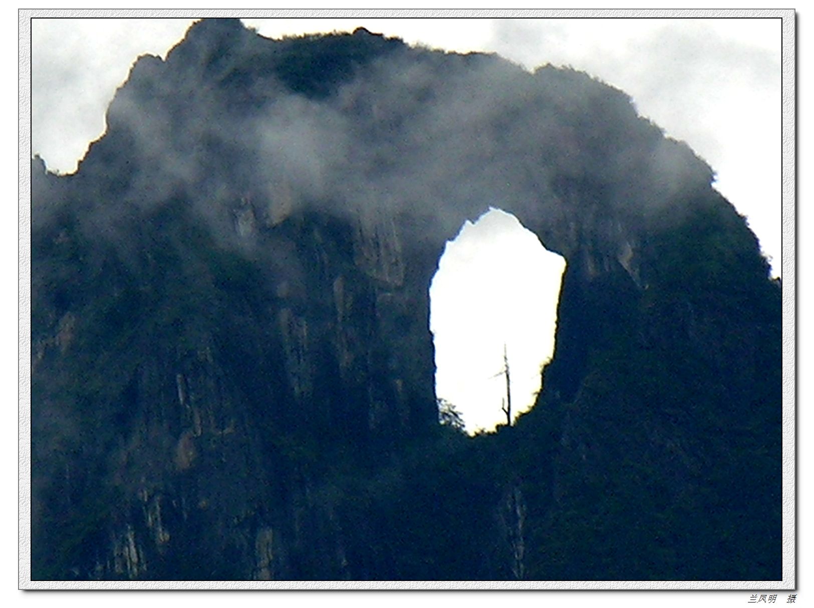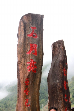 而就在此时,被浓雾笼罩的石月亮的身影突然显现出来,引来了一片惊呼。在相机和手机不停地“咔嚓”声中,美丽的石月亮只停留了两分钟,之后再次隐身到翻滚的云雾中。