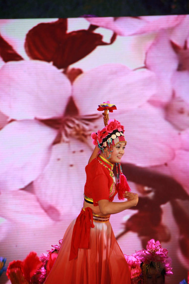 夜晚,阔时节文艺晚会在福贡县石月亮广场举行。偌大的广场上,层层叠叠地挤满了围观的群众。