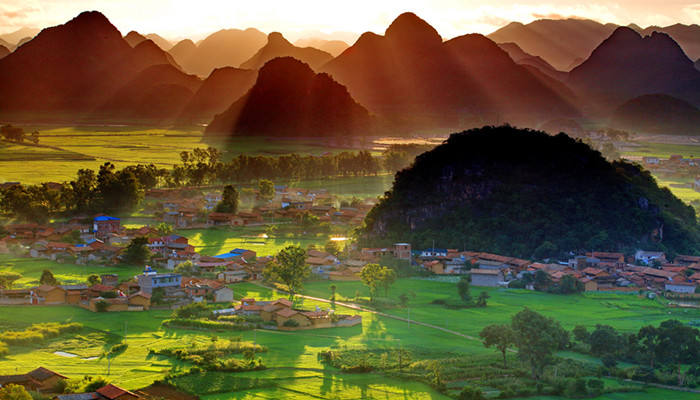 绿树掩映中,古老的小镇,老房子、老水井、古桥梁,构成了浓郁的乡村特色;寺院、红烛、晚钟,散发着传统文化的芳香——云南省文山州文山市平坝镇,这里是中国三七原产地和发源地,也是中国古代商贾云集的三七经济交流中心。