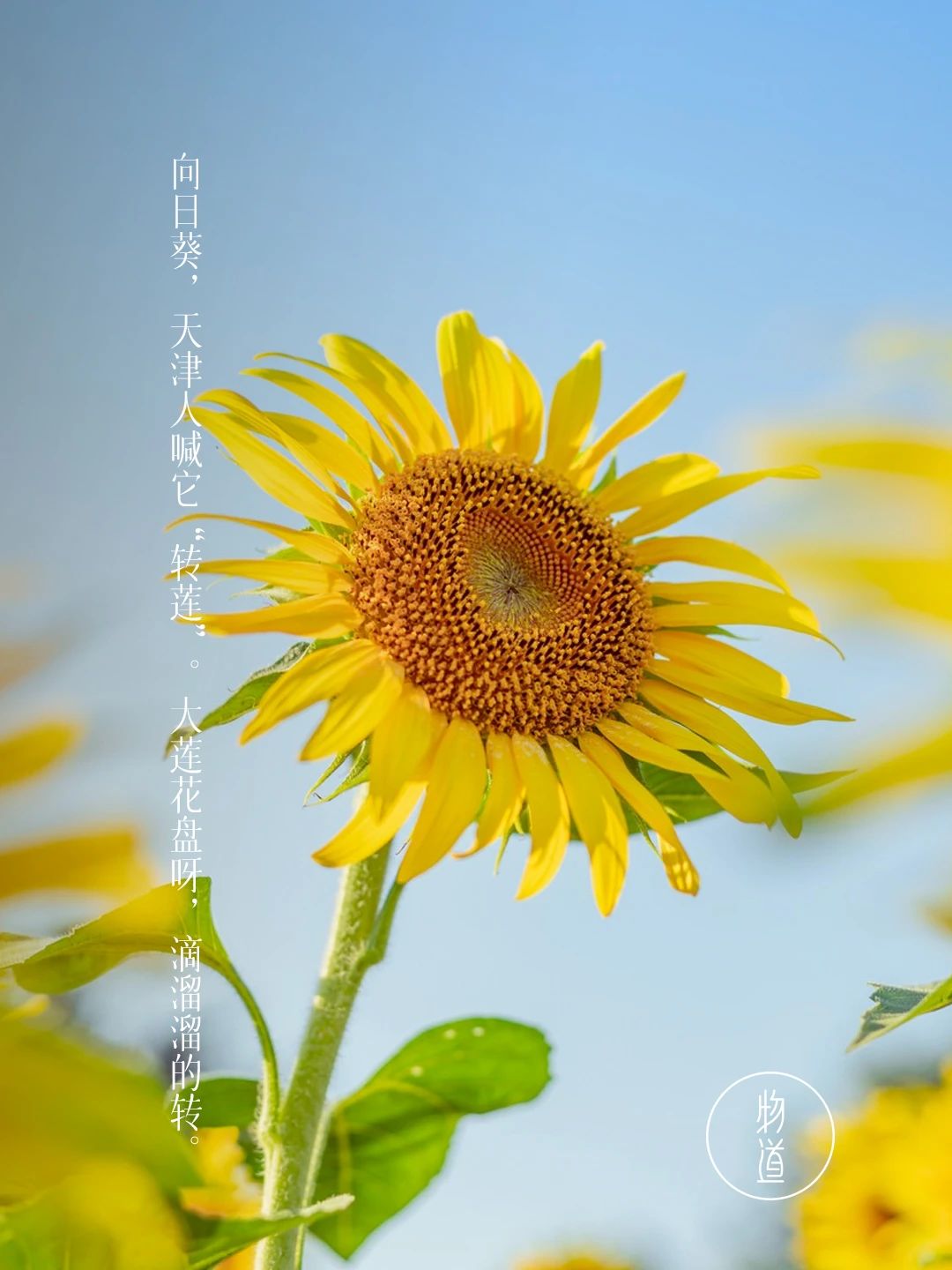 转莲——向日葵,天津,河北一带的称谓。他们认为这是生存在陆地上的莲花,滴溜溜转着自己的大花脸盘,永远明媚灿烂,永远面向太阳。