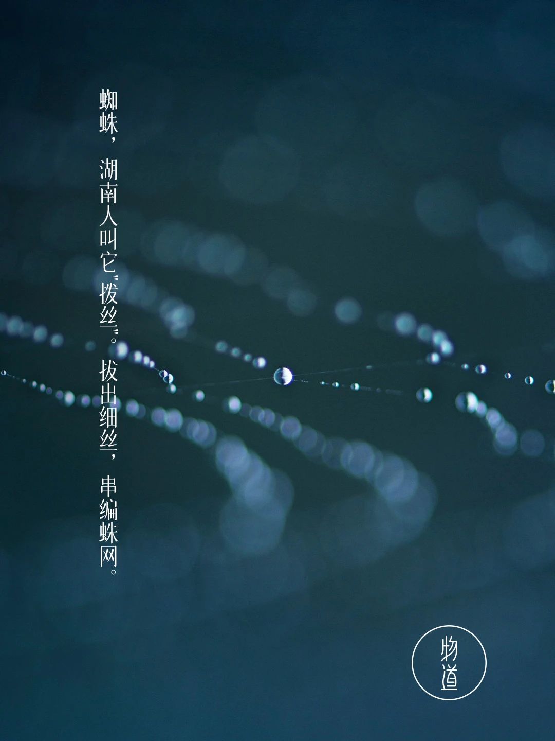 拨丝——蜘蛛。这是湖南地区的方言称呼。每当快要下雨时,蜘蛛就会在檐角默默吐丝,用长足一根一根将丝线拨过来,又拨过去。我猜,拔丝香蕉的名字就是从这里借鉴的吧?