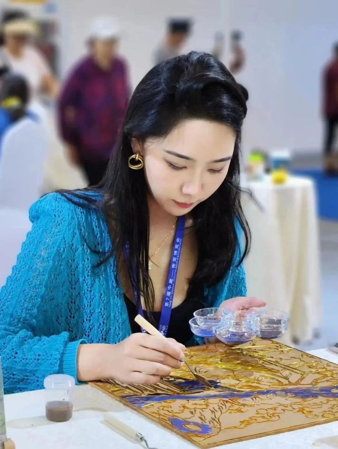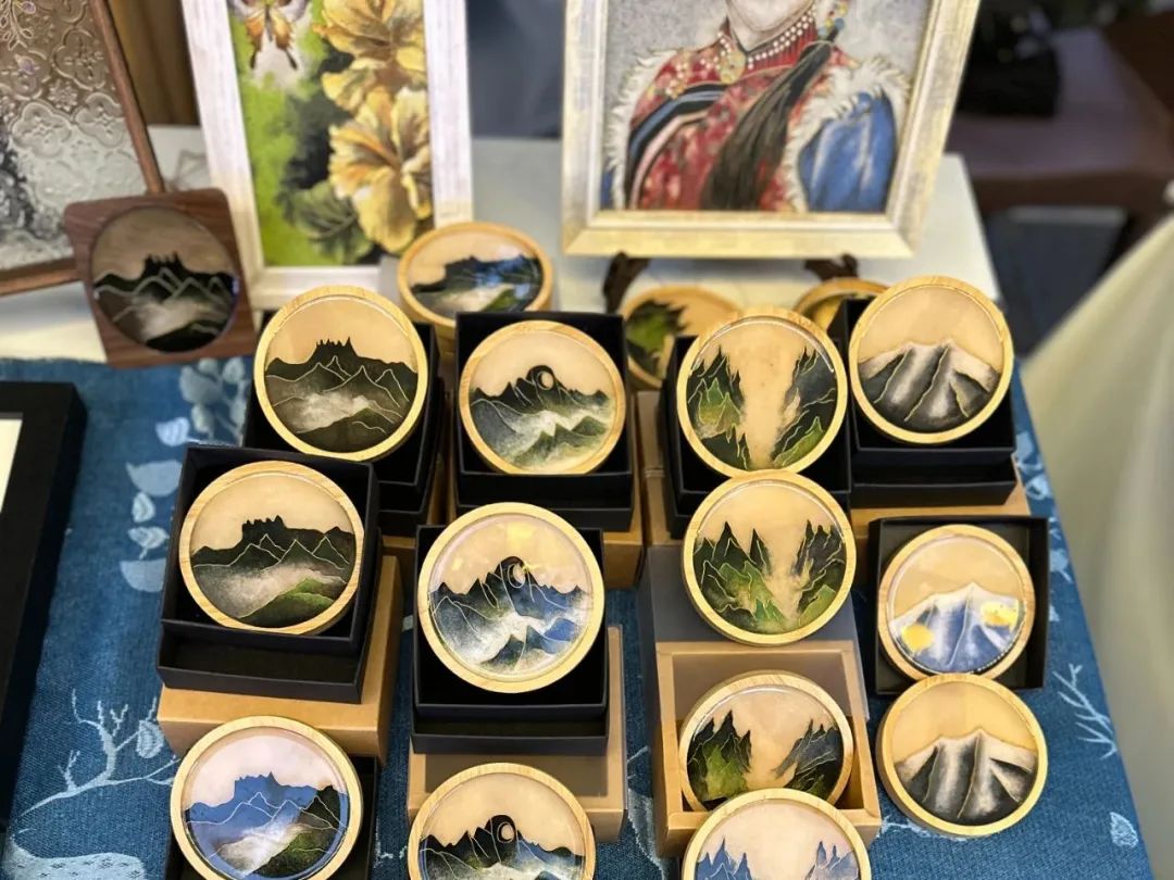 今年9月5日,以“跨越山海 申情帮购”为主题的第七届上海市对口地区特色商品展销会在上海展览中心开幕。兰坪箐源农特产品开发有限公司总经理杨梓艺结合潮流开拓新路,借助上海大市场、大平台、大流通优势,让文创产品走进寻常百姓家,走到更多年轻人身上。展销会上,杨梓艺带去参展的作品几乎都是怒江大峡谷、石月亮、雪邦山、皇冠山等怒江山水系列,这些艺术品可做杯垫、冰箱贴等,每片价格在79至89元之间,让怒江元素活跃在日常生活用品中,让掐丝珐琅成为宣传怒江旅游“行走的广告”。