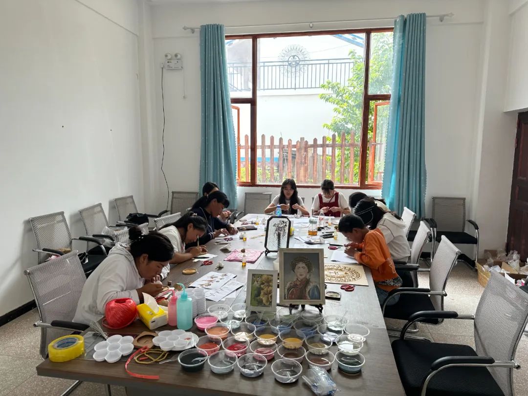今年7月,杨梓艺作为兰坪本土掐丝珐琅技术人才,到兰坪县通甸镇易门箐社区开设工作室,动员社区青年人才学习掐丝珐琅技艺、制作产品。该项目通过集体经济入股、手把手培训、订单式采购产品模式带动青年创业,当前吸引3名青年在工作室进行掐丝珐琅技艺学习和产品制作,目前已制作50个掐丝珐琅系列茶杯垫并销售到上海。工作室让社区青年学习传承非遗文化,解决了他们的就业创业问题,并通过工作室优势让手艺逐渐转变为职业,吸引更多的社区青年人返镇创业,使多彩的掐丝珐琅转换成鲜活的经济效益。