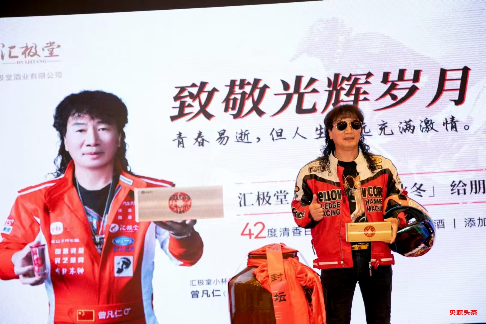 随着一各充满故事感的影片,以1960年代为起点,讲述着小杯酒的前世今生——随着影片的播放,画面创新性地转为直播,而画面中留着标志性长发,戴着墨镜的赛车手——亚洲车神曾凡仁,以汇极堂小杯酒代言人的身份步入会场, 顷刻引发会场高潮。