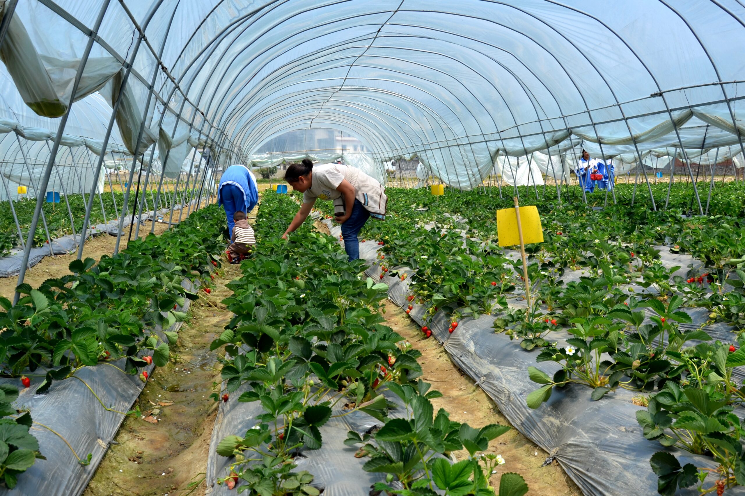暮春时节,走进临沧市云县涌宝镇石龙村村民吴密风的草莓园,一排排整齐有序的大棚里,红彤彤的草莓在绿叶间散发着诱人的清香,给小村庄增添了一抹靓丽的色彩。