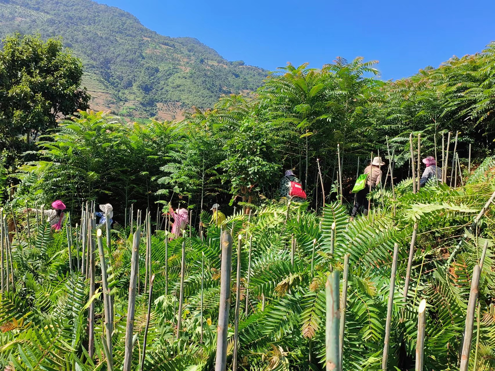 忙怀乡结合地域优势抓实抓好香椿产业发展,健全完善联农带农机制,探索出“党建+公司+农户+分红”“党建+产业发展+示范带动+分红”企地共建模式,以300亩香椿基地为突破口,辐射周边慢卡村、拉弄村壮大村集体经济。基地每亩香椿产量达60公斤,平均销售单价每公斤90元,2022年生产收入155万元,用工3000余人次。