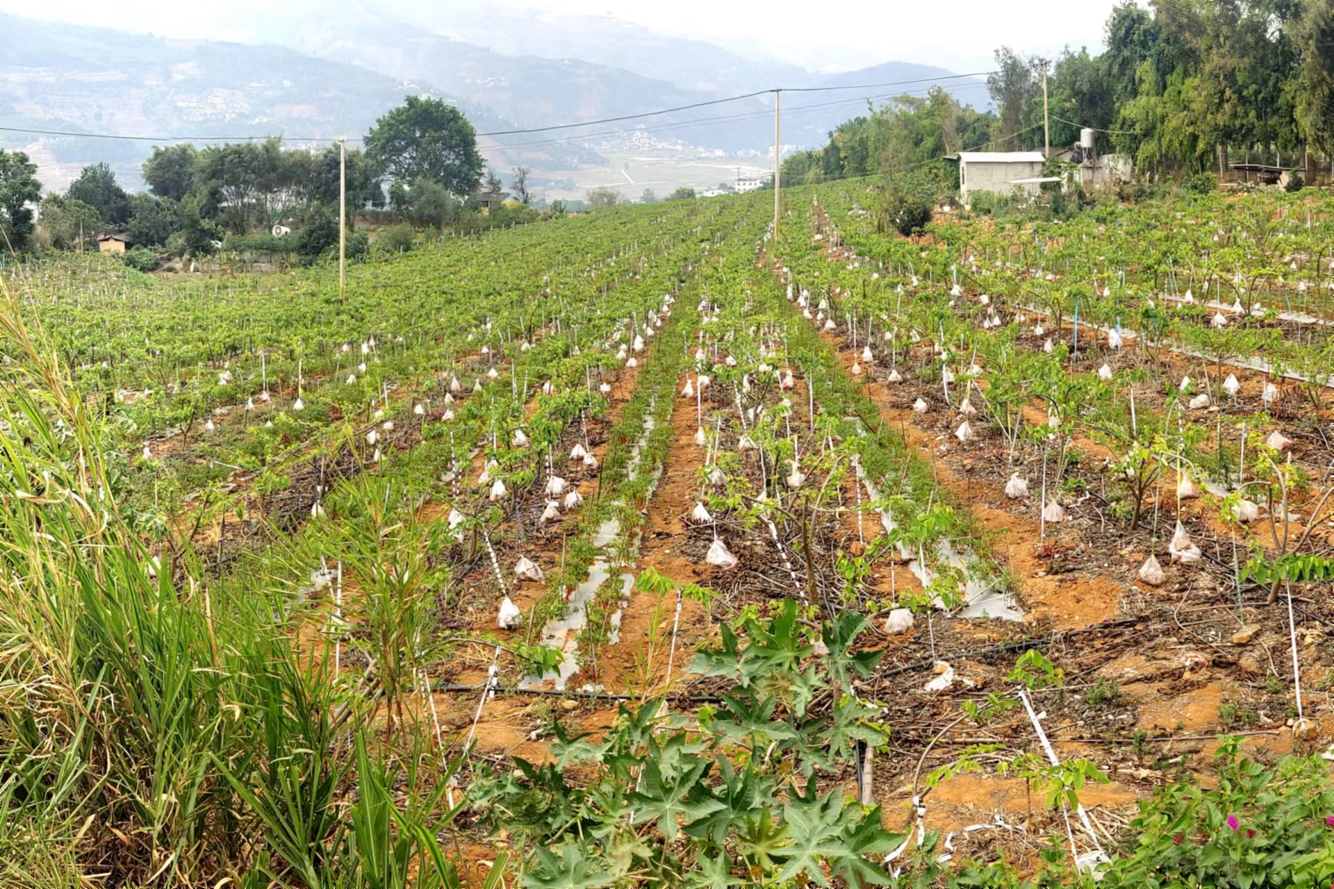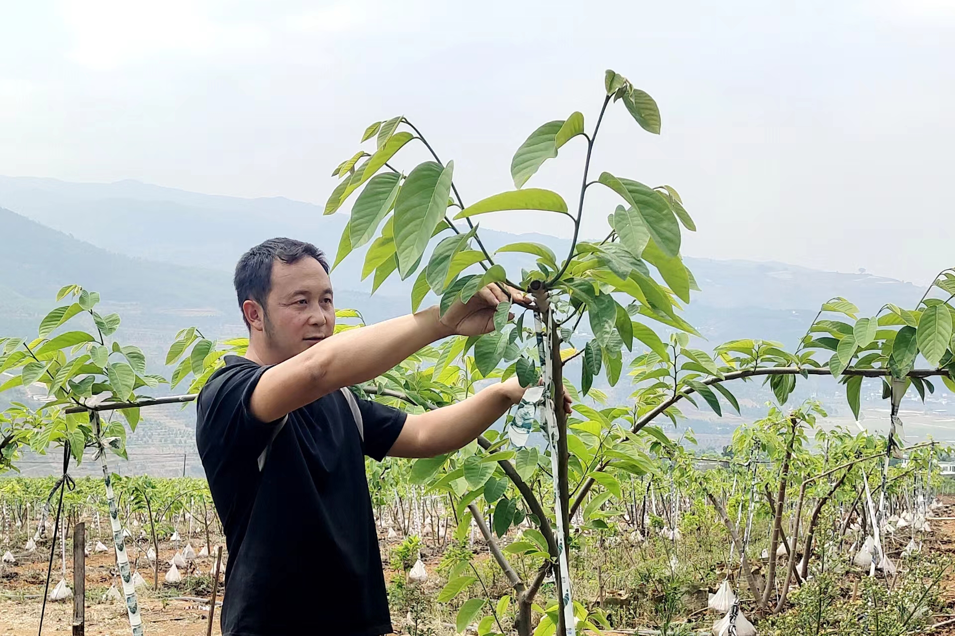 在云南省临沧市云县幸福镇农场哲扬家庭农场释迦果种植基地,一大片修剪整形后的释迦果树长势喜人,丰收在望。
