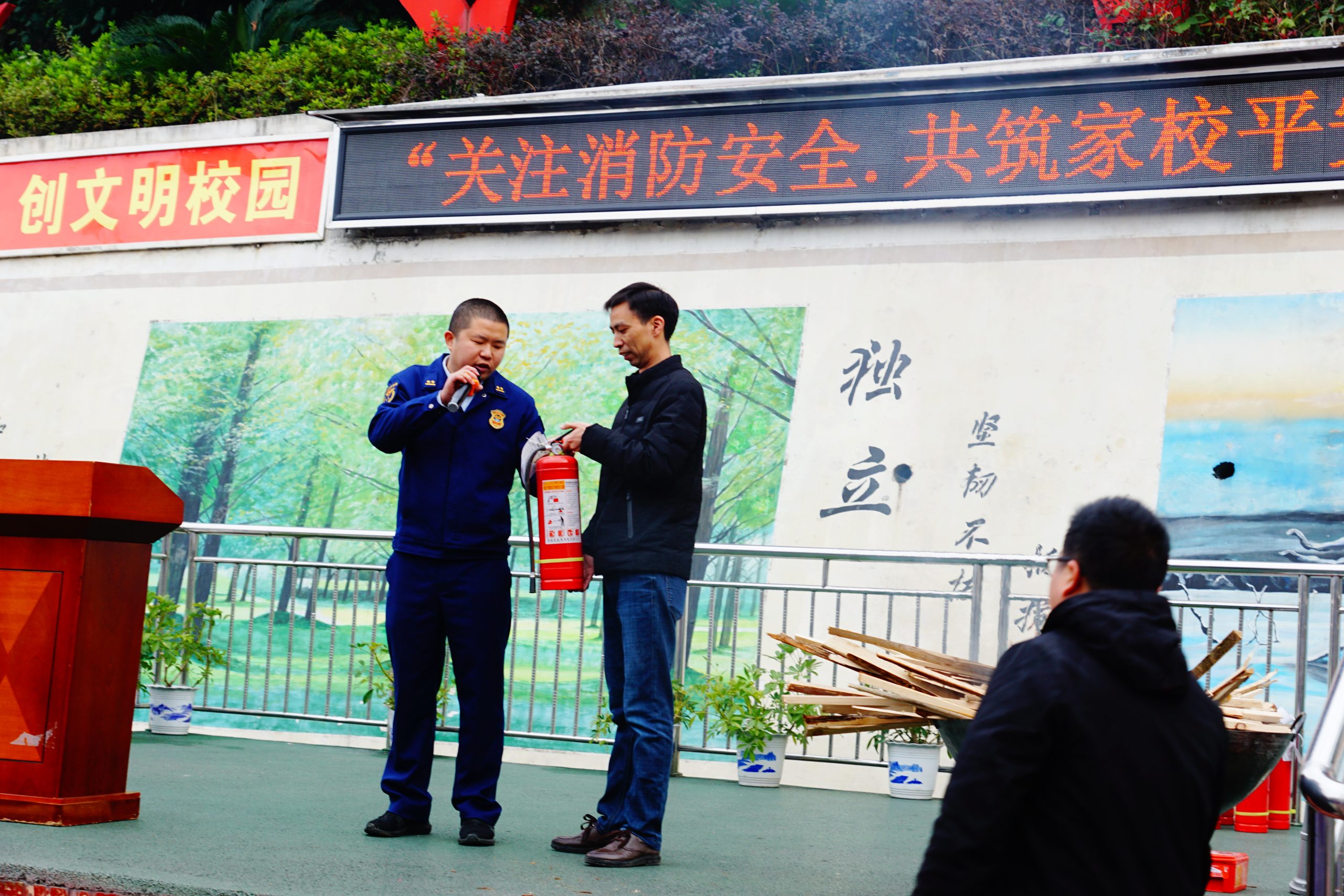 紧接着,县消防队李队长给全体师生及家长代表上了一堂生动可行的安全知识讲座,李队结合身边实际,分析了易发生火灾的原因和应对方法,讲述了火灾所带来的惨痛后果,让师生家长深感火灾事故的严重性和预防火灾的重要性。随后就如何加强日常消防安全管理、一般火灾的预防措施、初期火灾的扑救方法、报警时的注意事项以及火灾发生后如何逃生自救、各种消防器材的使用方法等一一作了讲解。在“家长消防安全警示座谈会”上,李队长又利用PPT展示了一幅幅触目惊心的火灾场面,一段段发人深省的火灾视频,让每一位参加培训的家长意识到了火灾的无情和安全正确使用电器、燃气及掌握消防知识的重要性。