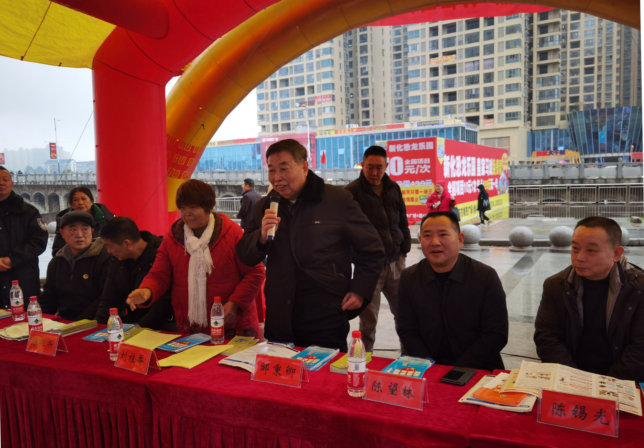 1月25日,小年至,年味愈浓,湖南省新化县上渡、上梅街道等单位以“健康人生 绿色无毒”为主题的禁毒宣传活动在县城交通中心地段有序开展,正式拉开新年禁毒序幕!新化县政府办副主任、县禁毒办主任陈锡光,县禁毒协会会长邹秉卿,上渡街道党工委书记陈望林、上梅街道党工委副书记杨益民等领导现场指导并参与宣传。