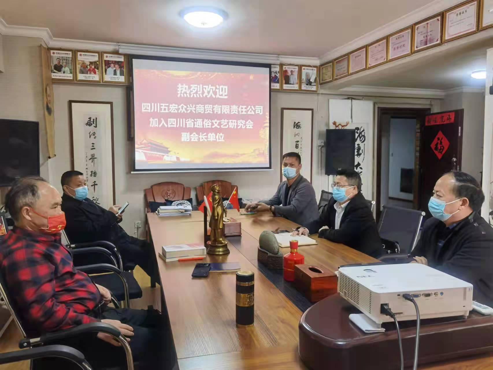 大家一起参观了四川省通俗文艺研究会办公室,共同观看四川省通俗文艺研究会的宣传片,张董事长表示研究会具有浓厚的文化氛围,对研究会有了进一步认识。陈家甫会长对大家的到来表示欢迎,对四川五宏众兴商贸有限责任公司加入四川省通俗文艺研究会副会长单位表示感谢,张董事长的加入让研究会又添一位新成员,为研究会注入新活力、带来新理念、开创新发展,会上,张董事长与陈会长深入交流了近期工作概况。