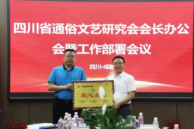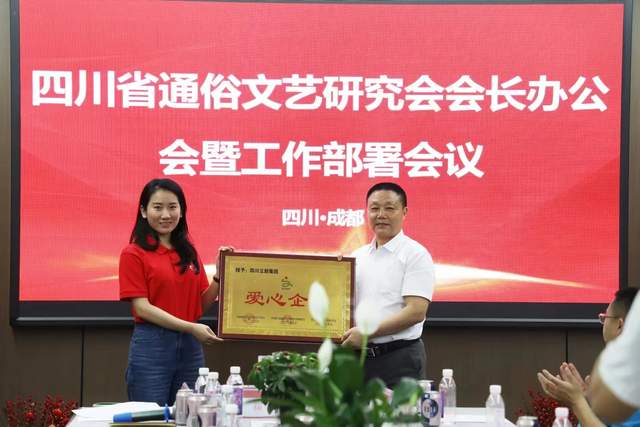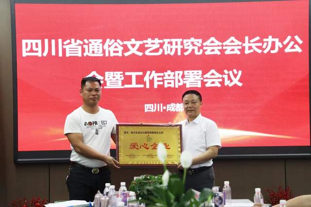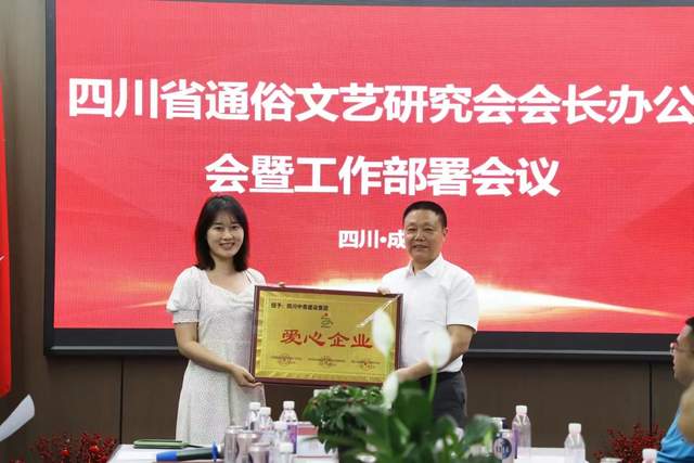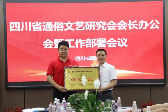 会上,滕董事长带领易田集团,向通俗文艺研究会献礼。为四川省通俗文艺研究会在“联成e家”搭建了“四川省通俗文艺脱贫攻坚馆”,让四川省通俗文艺研究会积极参与到乡村振兴中,实现副会长单位主与研究会健康发展,以商养会,把研究会做起来。