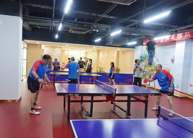 在简单的热身后,赵振元先后与多位队员对打,还与夫人张小平女士一起混合双打,飞舞的乒乓球和着轻快的击打声,乒乓球室传出一阵阵欢声笑语。