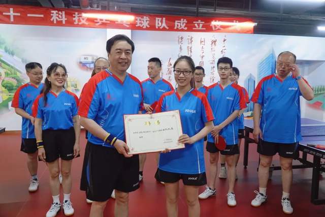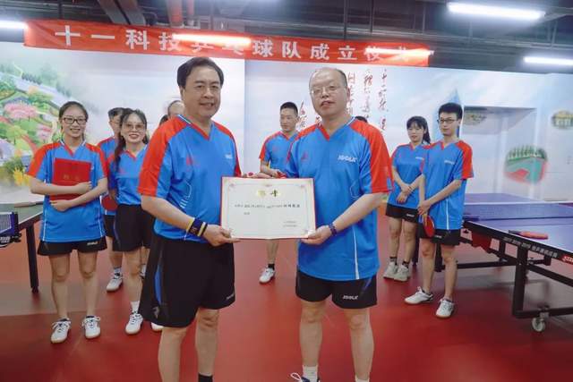 据悉,在十一科技成立乒乓球队成立仪式上,董事长赵振元同志担任乒乓球队名誉队长,屈毅同志任乒乓球队助理教练,曾奇同志任乒乓球队男队队长,刘阳同志任乒乓球队女队队长。