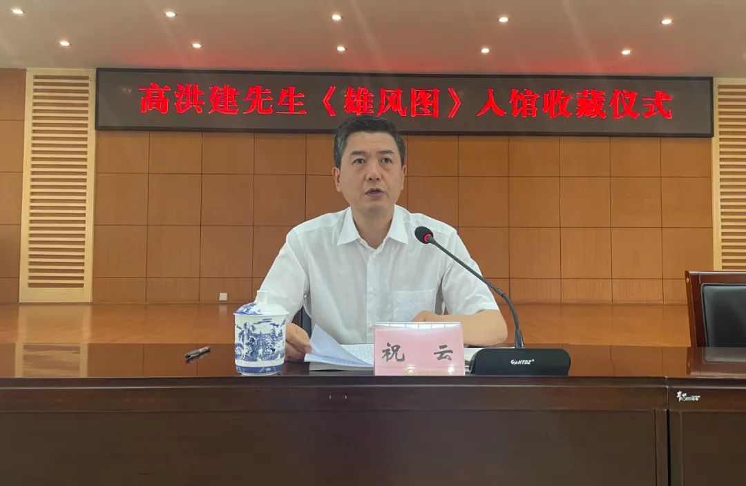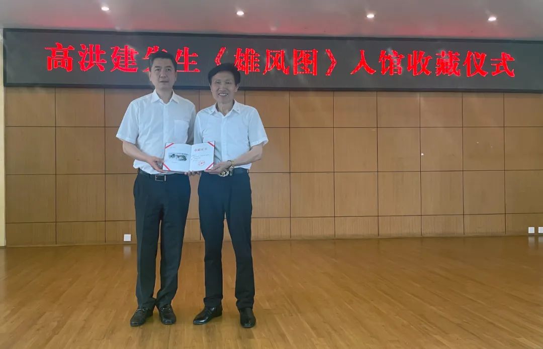 在收藏仪式上,高洪建先生讲述了《雄风图》的创作心路历程。书法家、四川省政协书画研究院书法专委会主任黎光成,四川省美术家协会原副主席张国平先后发言。四川省文联名誉主席郑晓幸讲话。四川省档案馆馆长祝云致辞并为高洪建先生颁发省档案馆《收藏证书》。